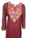 Dark Brown Red straight kurta, has a round neck, 3/4 sleeves, straight hem, and side slits