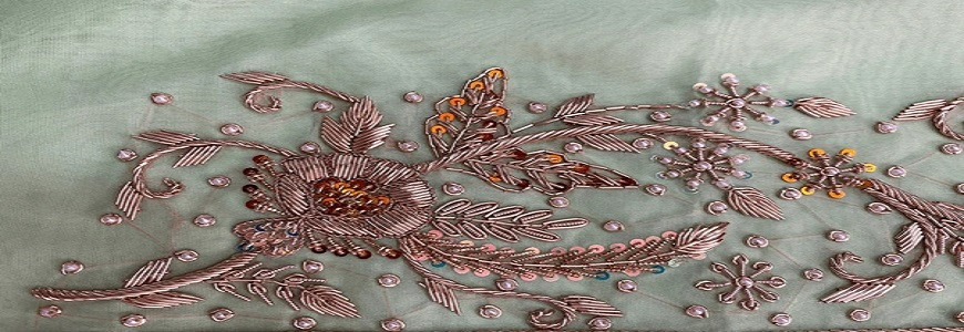 An Aari Work Saree features exquisite hand embroidery done with a...