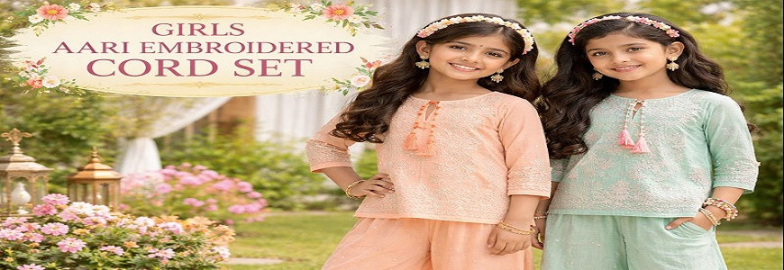 Celebrate elegance and comfort with our Girls Aari Embroidered Cord Set, crafted from soft, breathable fabric perfect for summer wear. Featuring intricate Aari embroidery inspired by traditional Kashmiri artistry, this coordinated set blends ethnic charm with modern style.